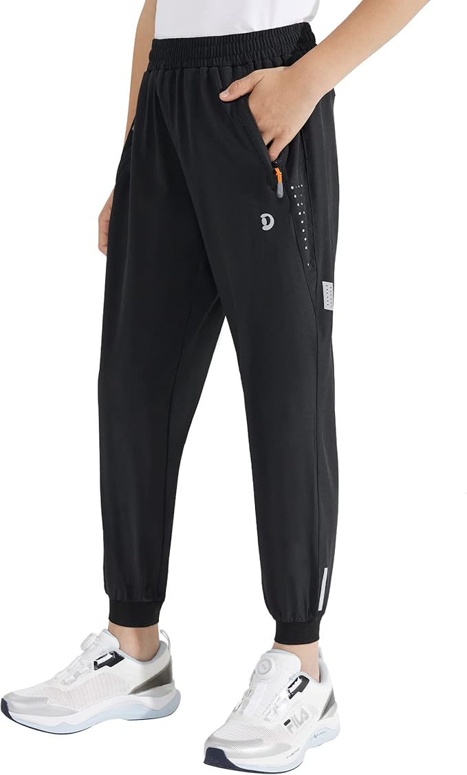 Boys Lightweight Jogger Pants Youth Kids Quick Dry Hiking Pants Active Athletic Pants with Zipper Pockets