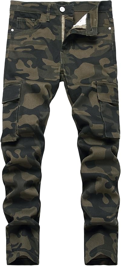 Boy's Camo Pants Skinny Fit Elastic Waist Stretch Camouflage Color Casual School Fashion Comfy Pants