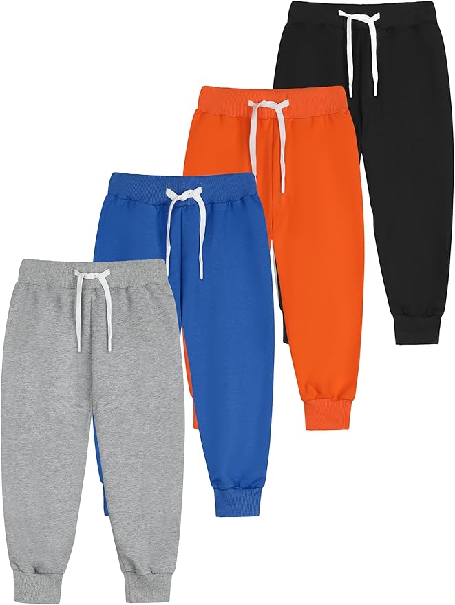4 Pack Toddler and Boys Joggers Sweatpants Kids Pull-On Active Athletic Pants with Drawstring Elastic Waistband