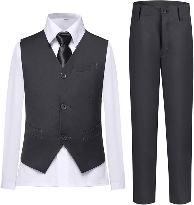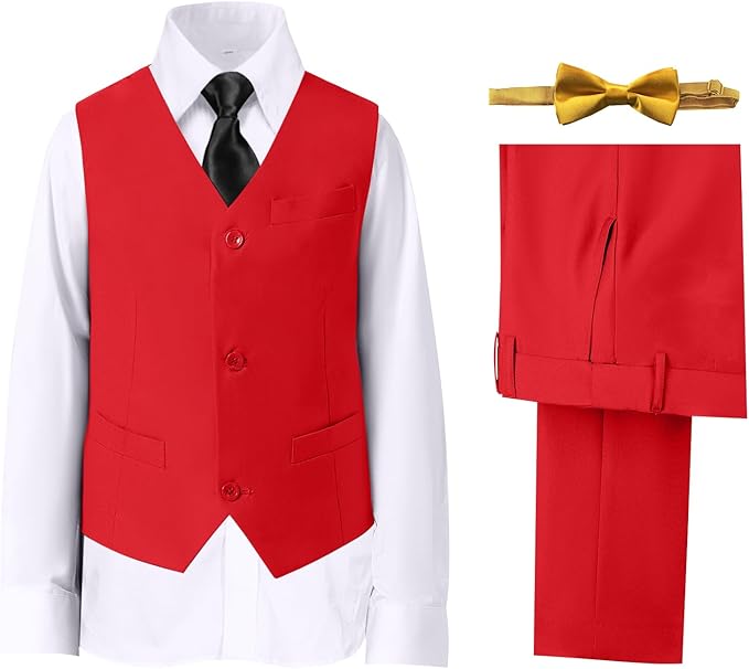 Boys' Suits Formal Slim Fit Tuxedo Boys Vest and Pants Set for Teens Dress Clothes Wedding Outfit with Tie and Bow Tie