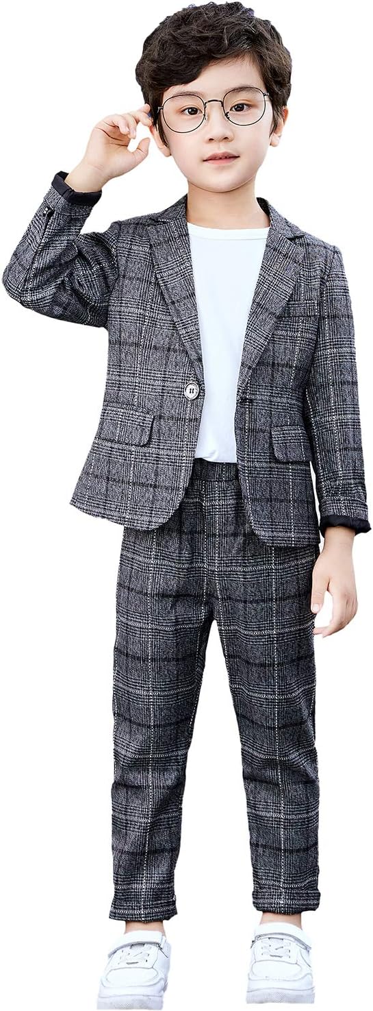 Boys Plaid Blazer Pants Set Casual Suit Classic Kids 2 Piece Sport Coats Outfits