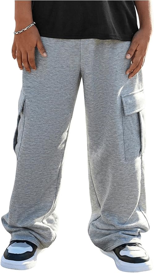 Boy's Loose Cargo Pants Elastic Waist Baggy Joggers with Pockets