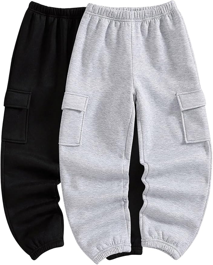 Boy's 2 Pack Cargo Sweatpants Elastic Waist Workout Jogger Pants