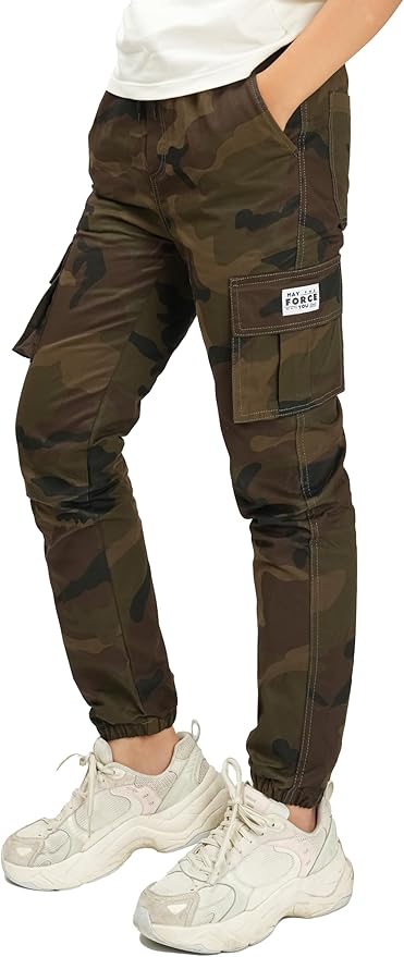 Boys Pull on Camo Pants Girls Slim Fit Cargo Pants Jogger 6-14Y
